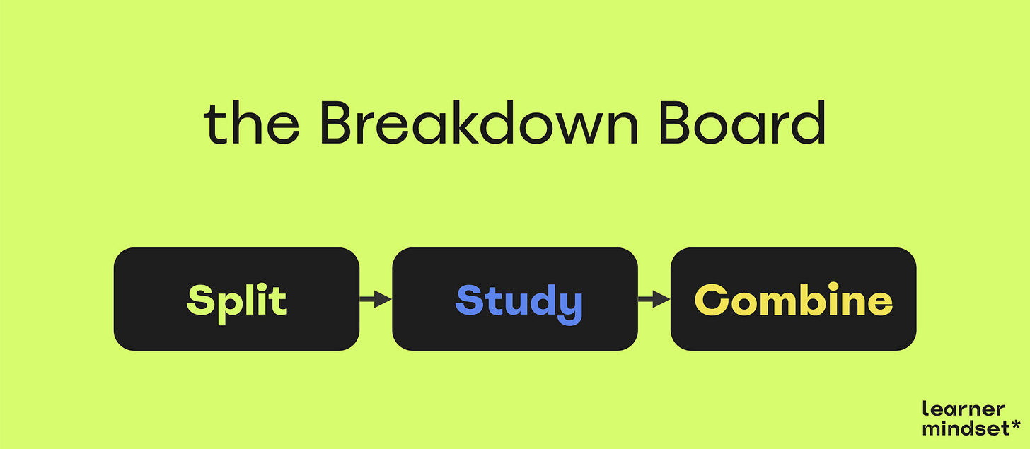 This is a very powerful 3-step method for understanding the hard-to-get stuff. In a nutshell, you split the complex into smaller elements, then you focus and learn each element separately, and finish off with re-combining the elements.