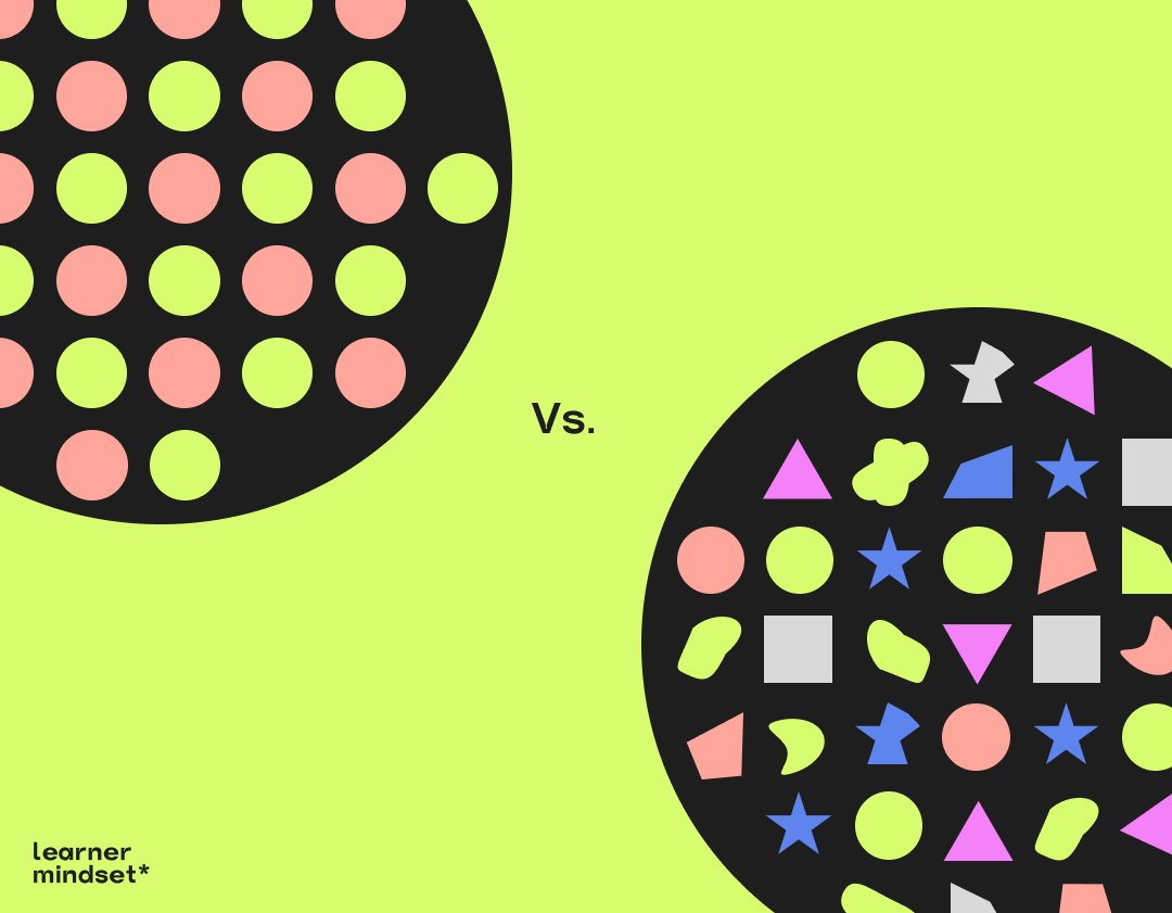 The difficulty increases slightly here due to the introduction of more variability and dimensions to consider (such as demographics, behavior, psychographics). These multiple factors result in increased complexity because the learner must integrate more abstract relationships – not just recognize simple patterns as in product extensions.