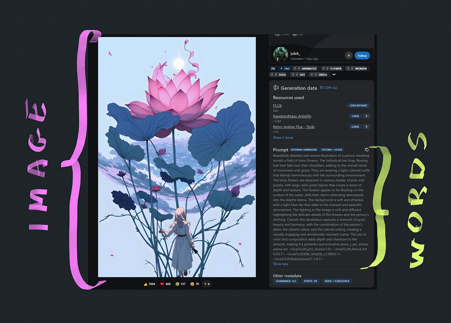When we look closely, we can notice a pattern emerging. The pattern points to the words. You see, words are the base layer for all these systems. Using english, polish or japanese words — you describe what you want, and most of the time you get what you asked for. We begin to use words as tools (which they have always been btw).
